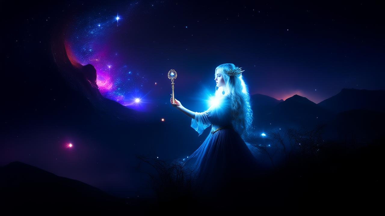 Die alte Seherin des Nebelgebirges, eine Gestalt aus Nebel und Schatten, erschien in einer fließenden Träne aus Dunst. Sie hatte den Namen Elara und ihr Haar schimmerte wie die Morgenröte, doch ihre Augen spiegelten das tiefe Grau der Unendlichkeit wider. Elara erkannte sofort die Trauer in Serenyas Augen und sprach: ‘Du trägst das Gewicht des Himmels in dir, kleine Elfe. Doch du musst den Sternenweg finden, wenn du deine Welt retten willst.’ Sie überreichte ihr ein zarter, schimmernder Faden, der in den Himmel zu verjüngen schien.