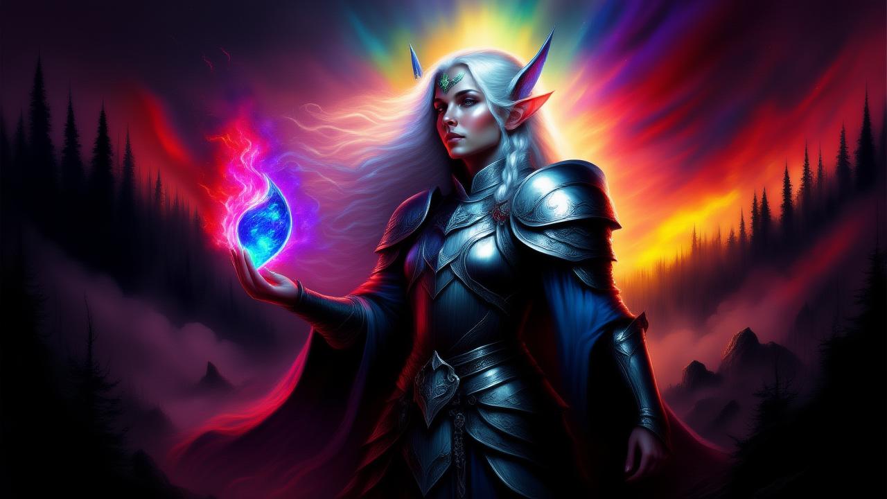 Serenya, eine junge Elfenklinge mit schimmerndem, silbernem Fell und einer seltenen Gabe, die Schwingungen von Farben zu hören, spürte den Schmerz in jeder grauen Welle. Ihr Herz schlug im Takt von verlorenen Farben, und ihr Atem war erfüllt von den verblassten Melodien, die einst durch die Luft wehten. Während der ersten Nächte, in denen die Regenbogenlinien verblasst blieben, sang sie in einer Sprache, die nur die Farben verstehen konnten – eine stille Bitte um Rettung.
