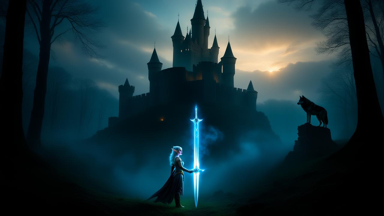Als die Klinge in ihrem Griff glänzte, wuchs die Dunkelheit um sie herum. Das Flüstern der Bäume wurde lauter, und das Licht im Herzen der Elfen war zu erlöschen. Doch Serenya stand fest, entschlossen, die Schatten zu bekämpfen.