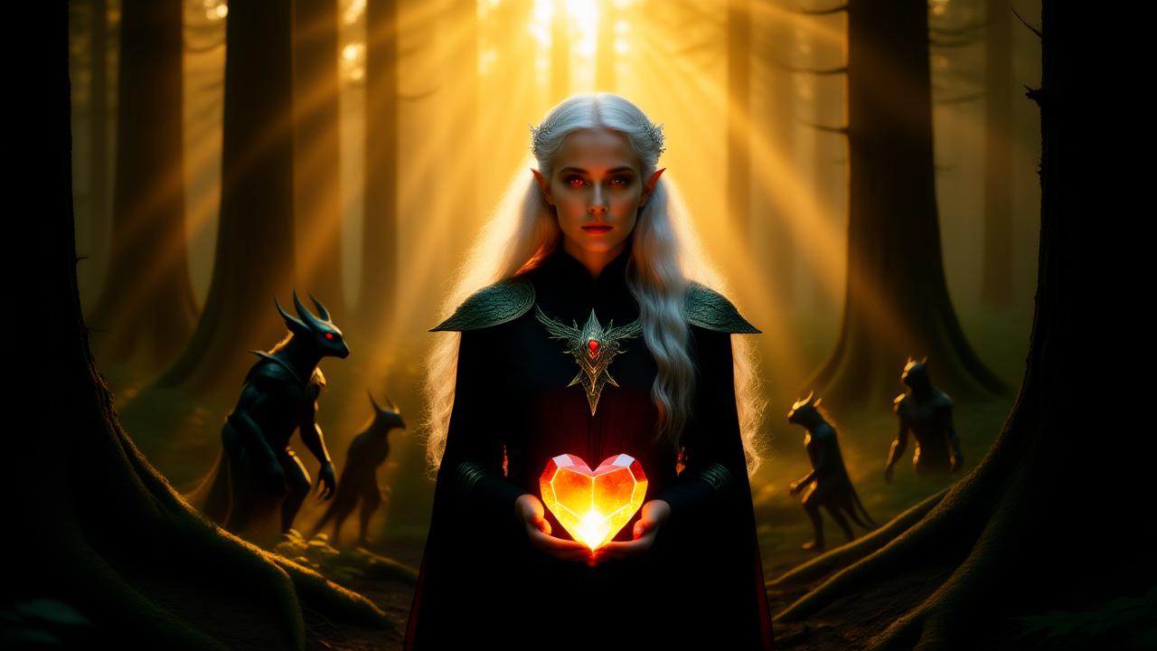 Doch eines Morgens, als die Morgensonne gerade die Kuppeln des Waldes küsste, drang ein unheimliches, schwarzes Flüstern durch die Ritzen der Bäume. Schattenwesen, die in den Tiefen des Waldes lebten, begannen, ihre Grenzen zu überschreiten. Sie schlichen zwischen den Wurzeln, ihre Augen leuchteten rot wie Brandflammen, und sie verbreiteten eine Kälte, die selbst die Bäume zittern ließ. Die Pflanzen, die Serenya seit Jahren pflegte, begannen, ihre Farben zu verlieren, und die Tiere flohen in Panik. Der Wald, einst ein Ort der Ruhe, wurde zum Schauplatz einer wachsenden Gefahr.