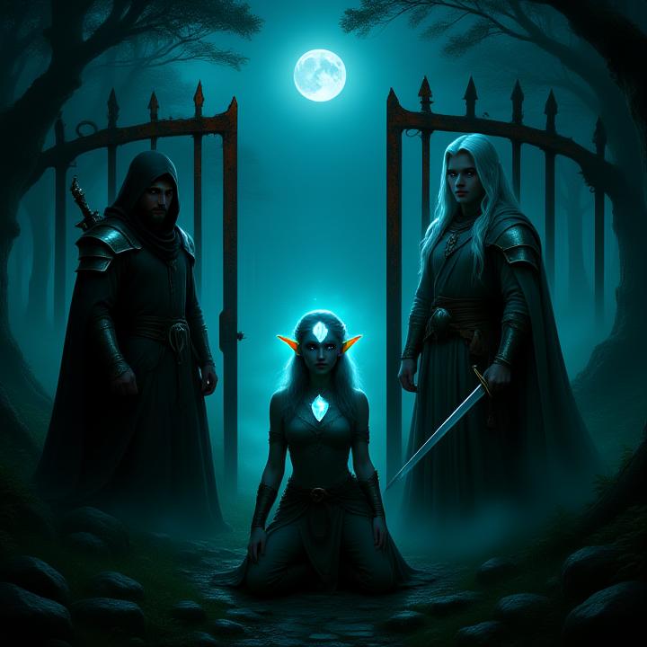 Die Gruppe bleibt bei ihrem Plan. Sie folgen dem Flüstern des Mondes und erreichen eine Lichtung, wo die Bäume wie Wächter um ein altes, verrostetes Tor stehen. Auf dem Tor prangt ein Symbol, das den Mondstein widerspiegelt. Serenya legt ihren Mondstein in die Mitte des Symbols, und das Tor beginnt zu leuchten.