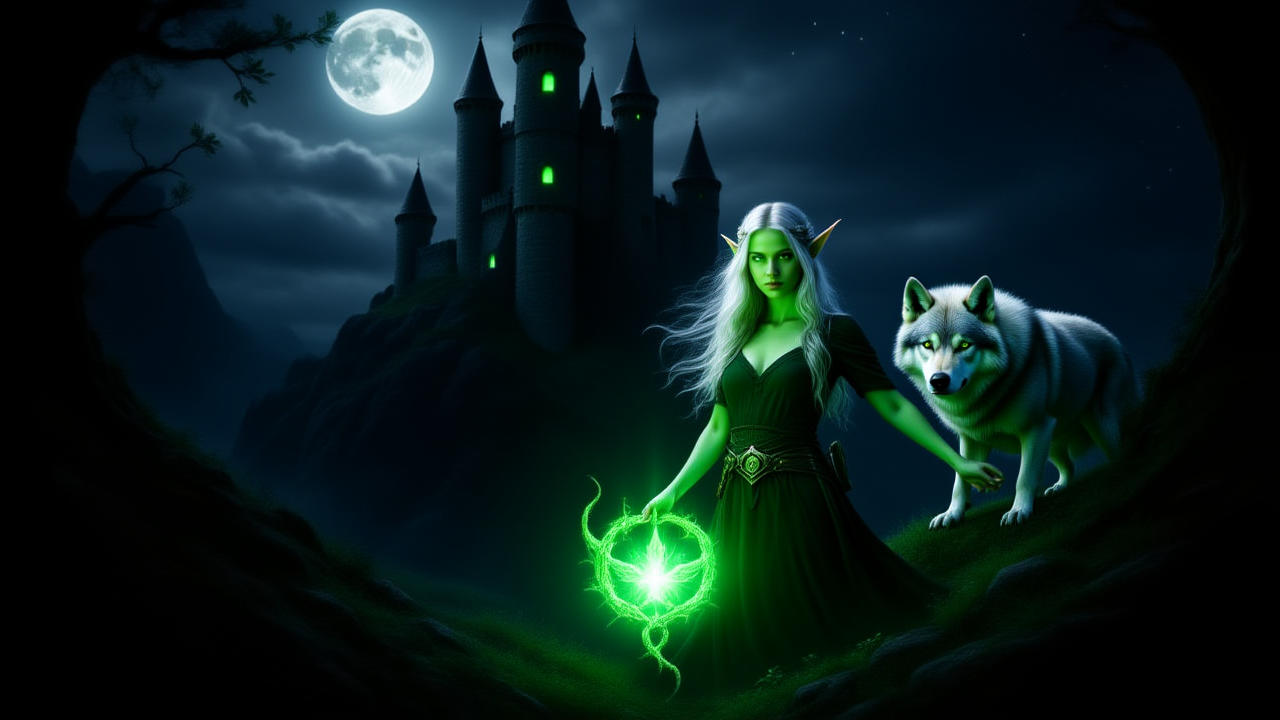 Serenya, die junge Elfe aus dem Wald von Ealdholt, hat ihr ganzes Leben damit verbracht, im sanften Schatten der Bäume zu verweilen und mit der Natur zu kommunizieren. Jeder Tag war ein leises Lied aus Vogelgezwitscher, Rauschen des Flusses und dem vertrauten Duft von Moos und Pilzen. Ihre treue Begleiterin war der junge Wolfshund Lunar, dessen silbernes Fell im Mondlicht schimmerte und dessen Ohren stets aufmerksam lauschten. Sie teilten ein Band, das stärker war als jede Klinge, und die beiden waren unzertrennlich.